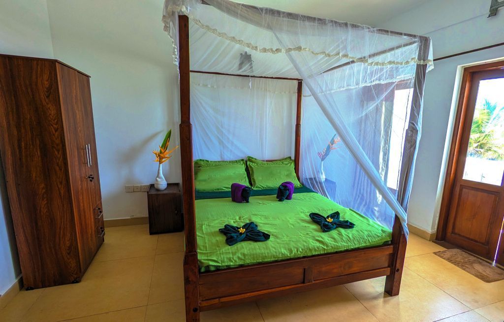 Vier Pfostenbetten mit Moskitonetz (in allen Zimmern).